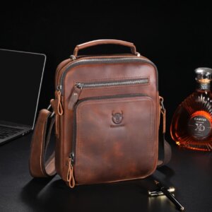 Bull Captain DJB 0500-L Δερμάτινη Ανδρική Τσάντα Ώμου / Χιαστί Σε Χρώμα Καφέ