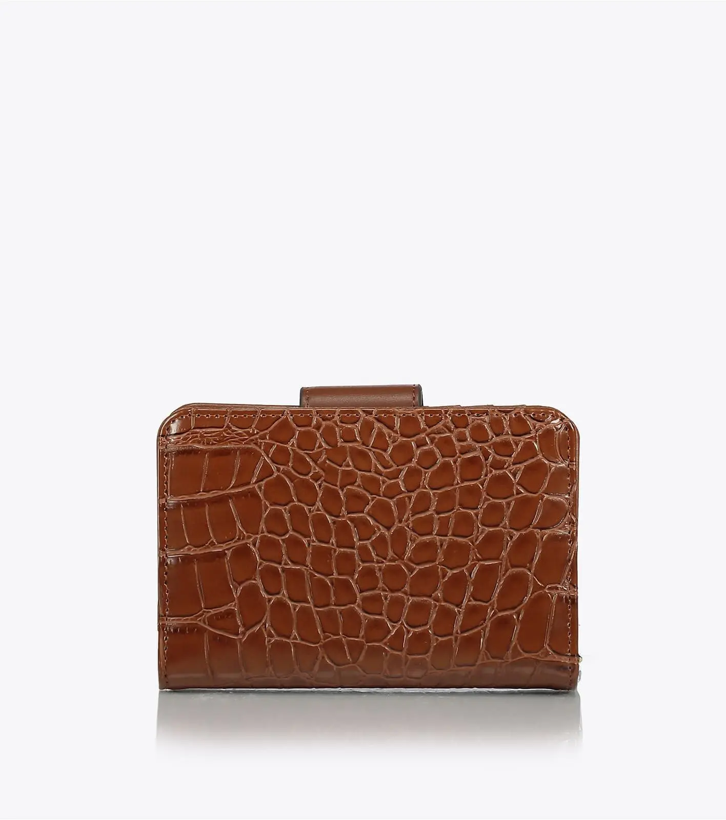 Γυναικείο πορτοφόλι που διπλώνει, σε κροκό σχέδιο, κατασκευασμένο από συνθετικό δέρμα. Κλείνει με φερμουάρ και κούμπωμα. Διαθέτει θήκη για κέρματα και υποδοχές για κάρτες. Ένα απαραίτητο αξεσουάρ για κάθε γυναίκα που θέλει να μεταφέρει τα χρήματα και τις κάρτες της με ασφάλεια και στιλ.