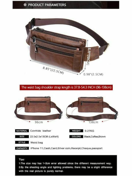 ▶ Κατασκευασμένη από γνήσιο δέρμα, αυτή η τσάντα μέσης μπορεί να έχει φυσικά σημάδια λόγω της ειδικής διαδικασίας γήρανσης, προσθέτοντας την ατομικότητα και τη γοητεία της. Το