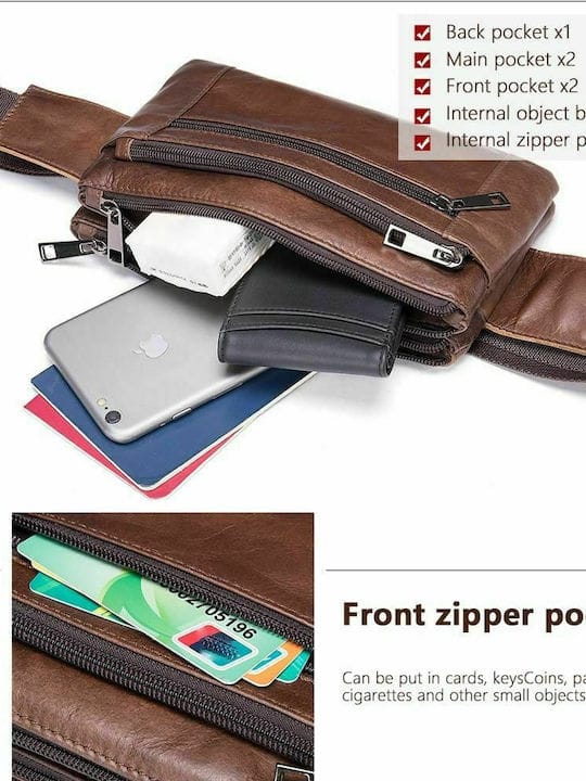 Cardinal 9012 Δερμάτινο Ανδρικό Τσαντάκι Μέσης Σε Χρώμα Καφέ