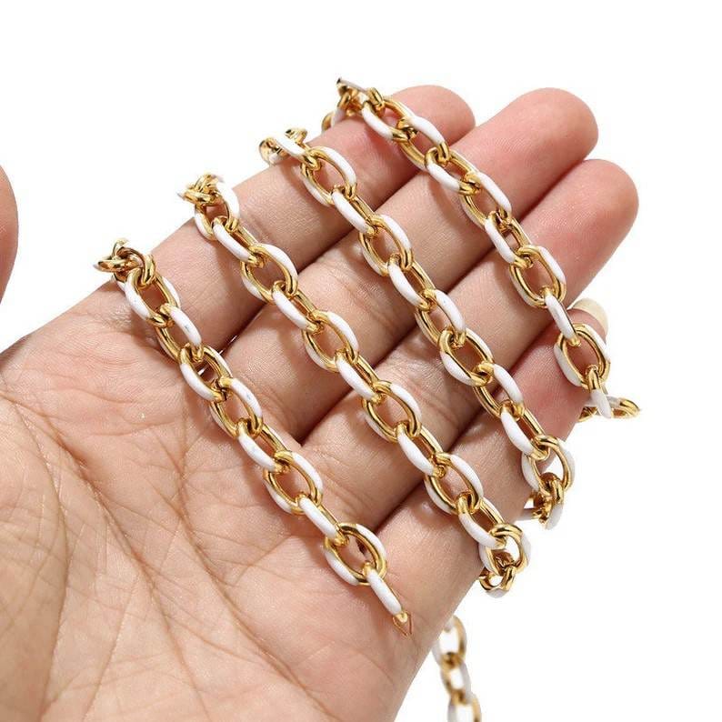 Μία όμορφη μοντέρνα γυναικεία αλυσίδα λαιμού από χειρουργικό ατσάλι 316L σε χρυσό και λευκό χρώμα.
