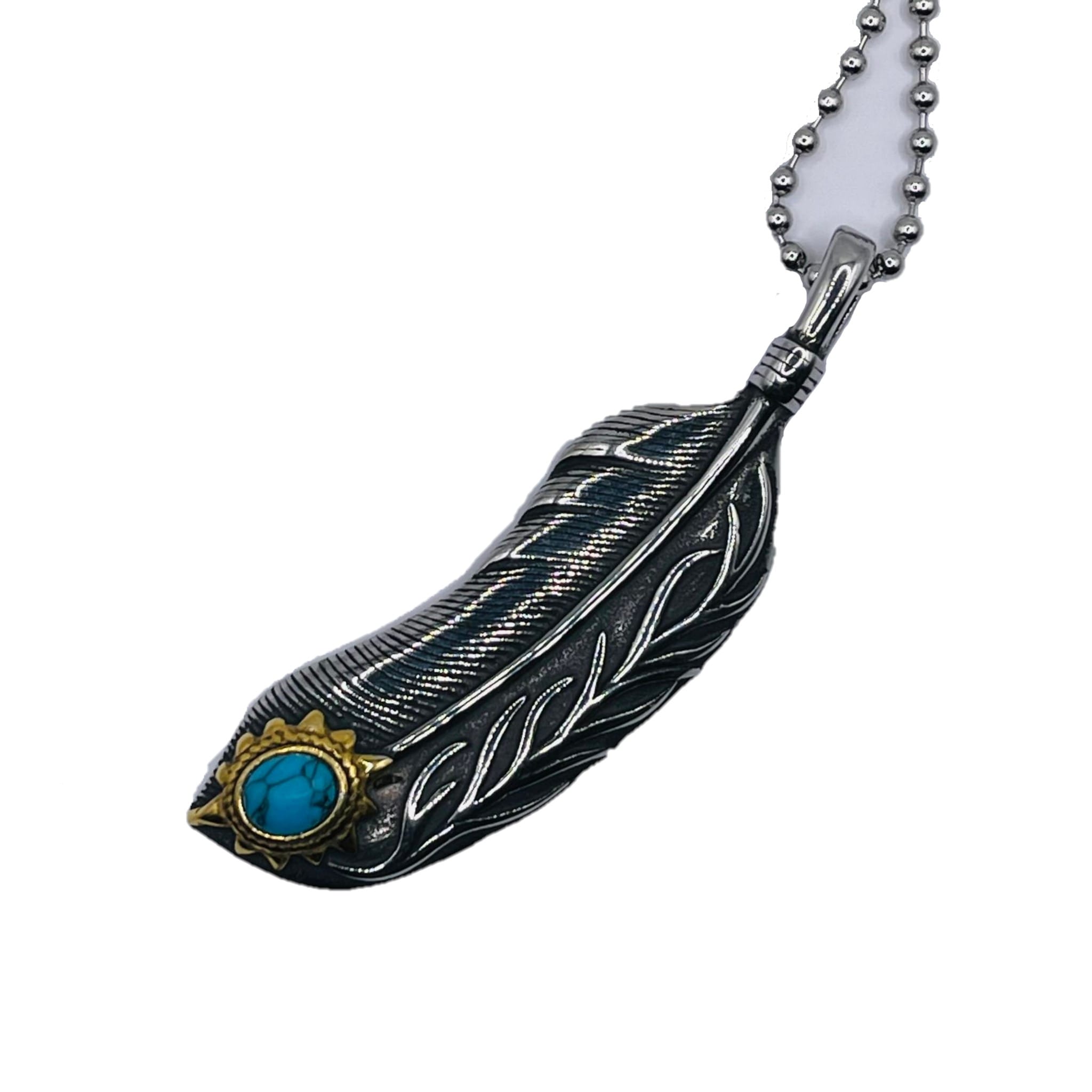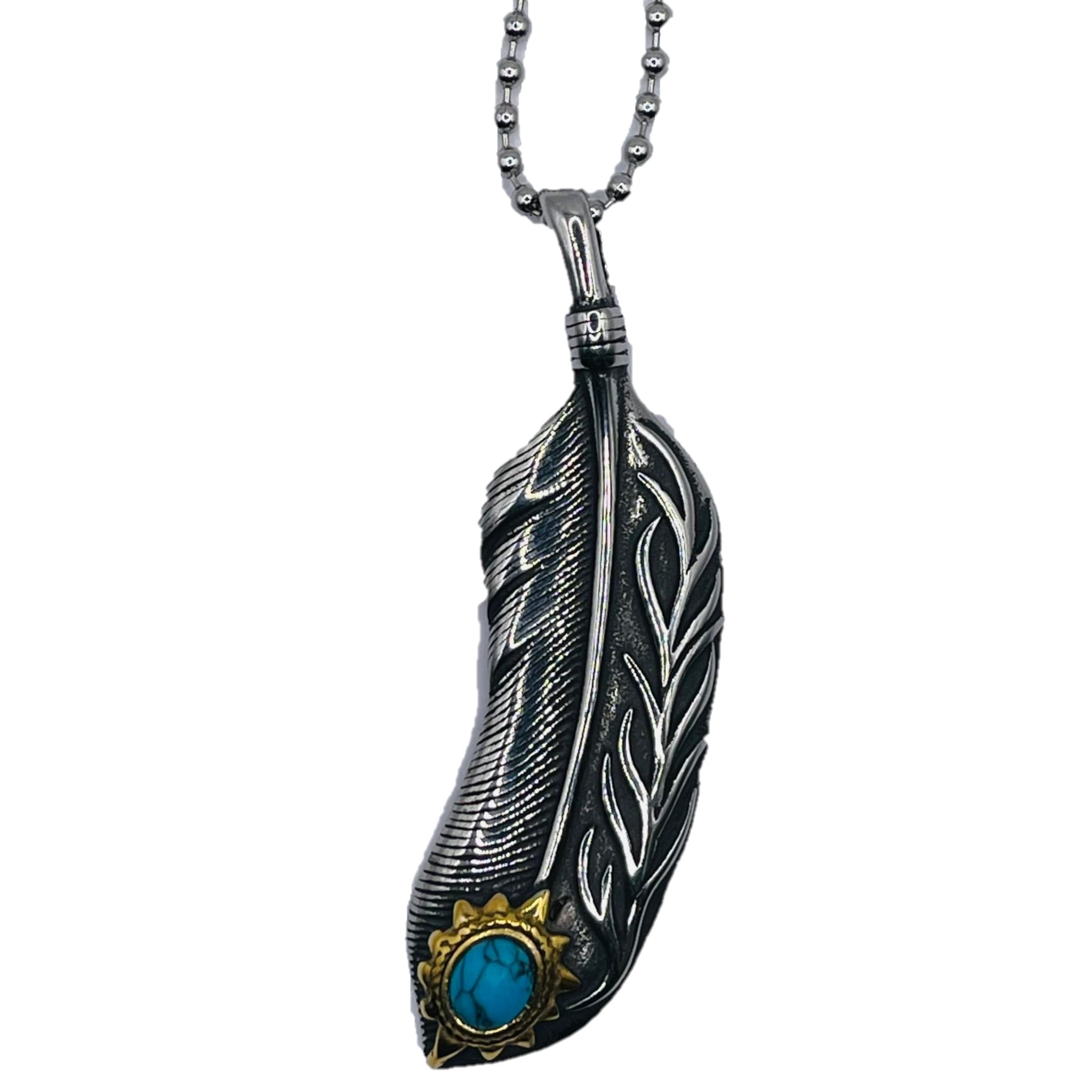 Original Mens Fashion Αλυσίδα Λαιμού Με Μενταγιόν Indian Feather Silver Μήκους 60cm Από Ατσάλι 316L
