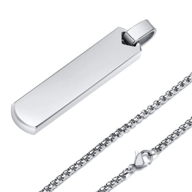 Original Mens Fashion Μενταγιόν Geometric Vertical Bar Silver Μήκους 60cm Με Αλυσίδα Από Ατσάλι