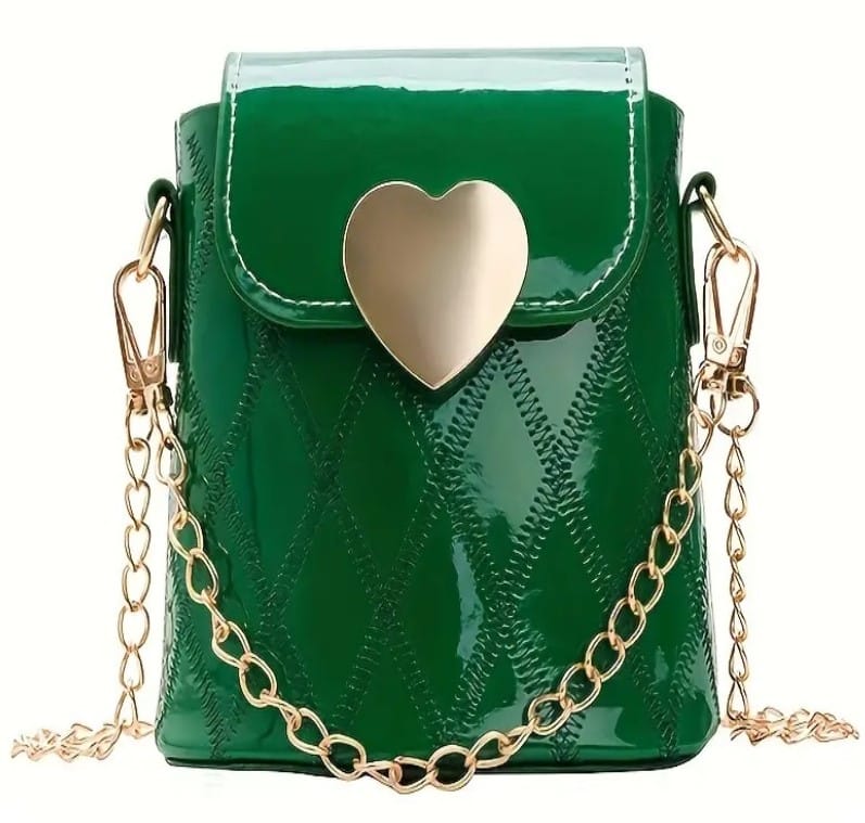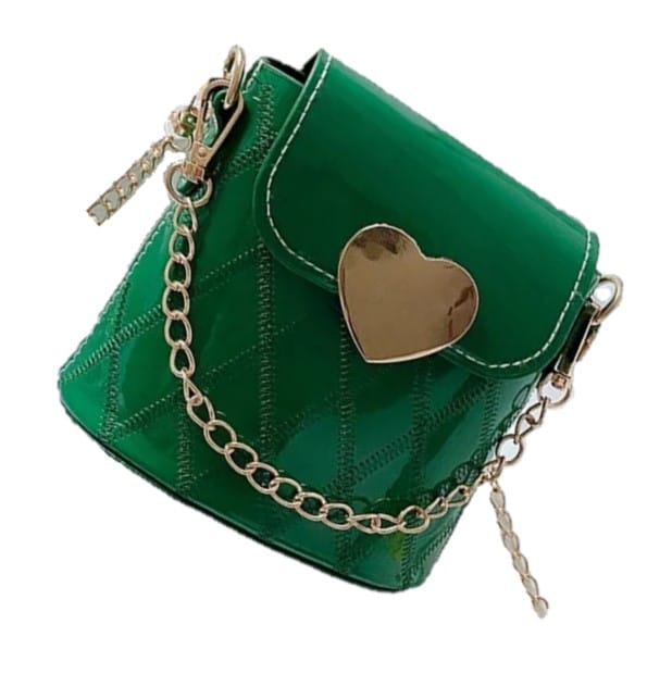 Mια κομψή και με στυλ ξεχωριστό από δερματίνη τσάντα ώμου για κορίτσι σε πράσινο χρώμα. Διαθέτει ένα κουμπί για κλείσιμο με μαγνητικό τρουξ στο επάνω μέρος και μία εντυπωσιακή αλυσίδα ώμου σε χρώμα χρυσό. Αποτελείται από έναν ενιαίο χώρο .