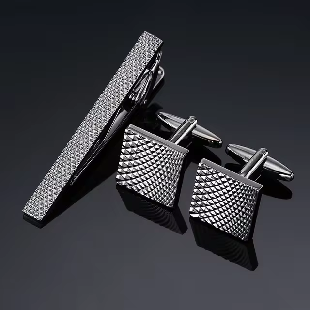 Set Ανδρικά Μανικετόκουμπα Original Men’s Fashion Από Ατσάλι Σε Μαύρο Luxury Silver