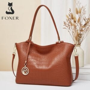 Foxer 986046F Δερμάτινη Γυναικεία Τσάντα Shopper / Ώμου Σε Καφέ
