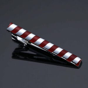 Ανδρικό Clip Γραβάτας Original Men’s Fashion Από Ατσάλι Σε Ασημί και Κόκκινο Fire Stripes