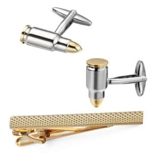 Set Luxury Ανδρικά Μανικετόκουμπα Original Men’s Fashion και Clip Γραβάτας Από Ατσάλι Σε Ασημί και Χρυσό Golden Bullets&AK-47