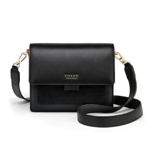Foxer 954011F Δερμάτινη Γυναικεία Τσάντα Χιαστί / Ώμου Σε Μαύρο