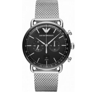 Emporio Armani Ρολόι Χρονογράφος με Ασημί Μεταλλικό Μπρασελέ Aviator AR11104