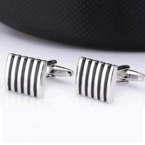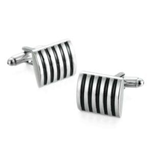 Ανδρικά Μανικετόκουμπα Original Men’s Fashion Από Ατσάλι Σε Ασημί και Μαύρο Black Stripes