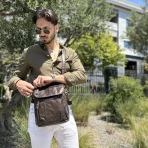 Cardinal 369 Δερμάτινη Ανδρική Τσάντα Ώμου / Χιαστί Σε Χρώμα Καφέ